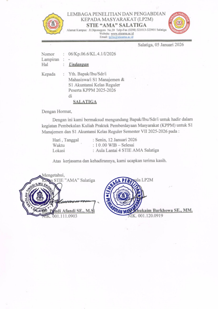 Undangan Sosialisasi dan Pembekalan KPPM S1 Manajemen dan S1 Akuntansi Kelas Reguler Tahun Akademik 2025-2026lp2mstieamasltg5 January 2026Pengumuman, Pengumuman KPPM